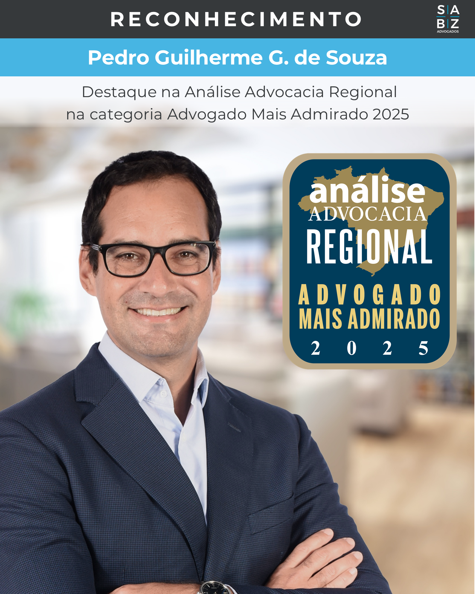 Pedro G. G. de Souza, sócio do SABZ Advogados, está entre os advogados mais admirados de 2025 pela Análise Advocacia Regional.