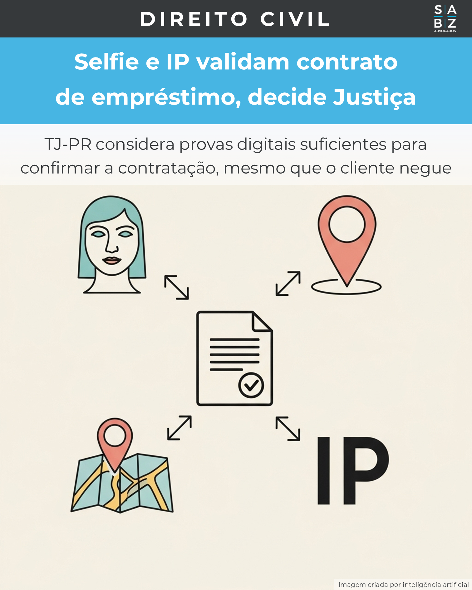 No processo nº 0011703-25.2024.8.16.0014, o TJ-PR reverteu a decisão que havia anulado um contrato digital de empréstimo com base na alegação do consumidor de que não contratou o serviço. O banco, no entanto, apresentou selfie, IP, geolocalização, código hash e comprovante de transferência. Para o TJ-PR, esses dados foram suficientes para comprovar a validade do contrato, sem necessidade de perícia técnica.