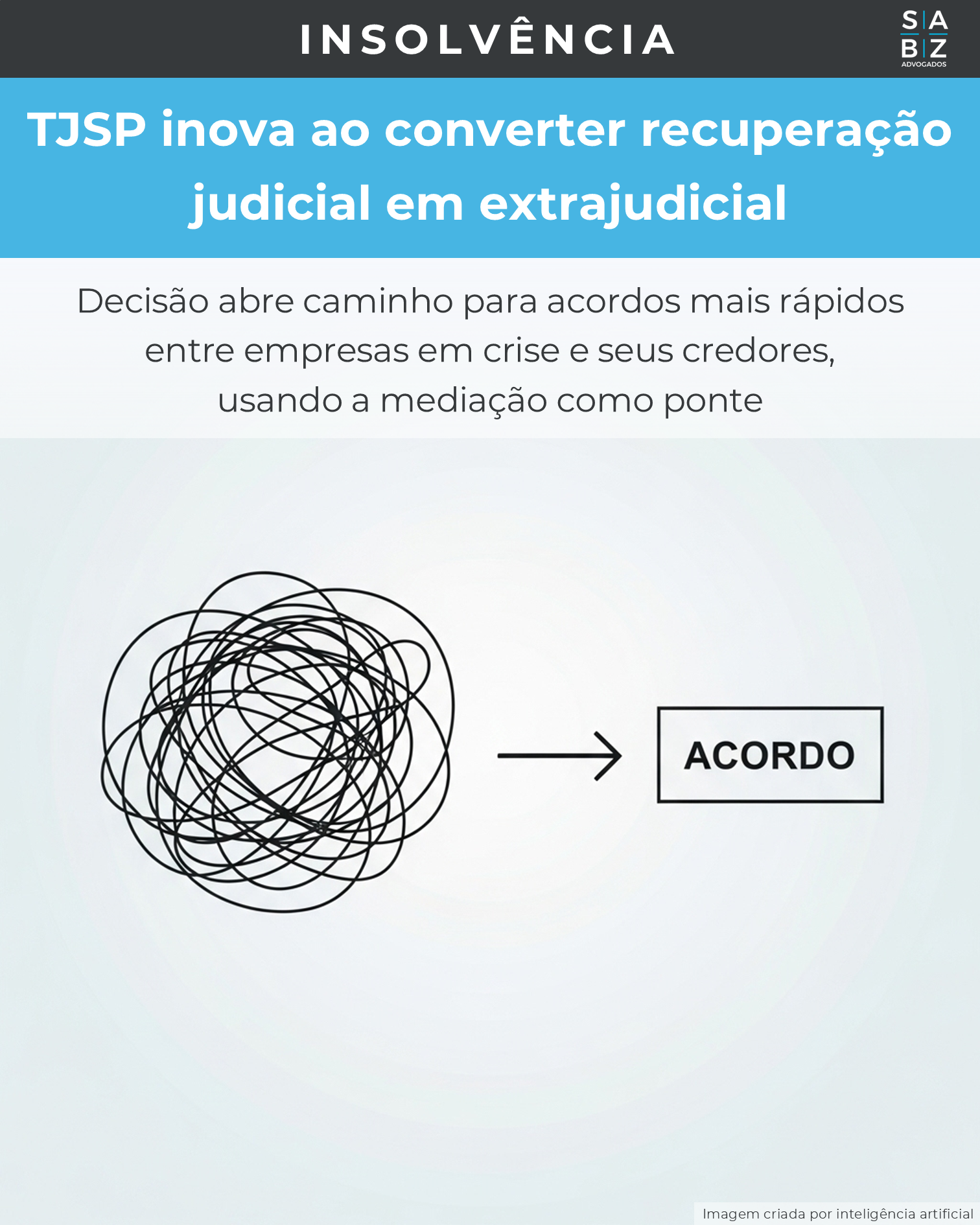 A 2ª Vara Regional de Competência Empresarial e Conflitos Relacionados à Arbitragem do Tribunal de Justiça de São Paulo autorizou, após o deferimento da recuperação judicial, a realização de mediação extrajudicial. Na mediação foi acordada a conversão da recuperação judicial em extrajudicial mediante a concordância de 57,48% dos credores (processo nº 1002965-90.2024.8.26.0260).
